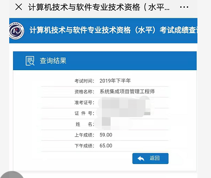 2019年下半年参加中级系统集成项目管理工程师考试的成绩单: