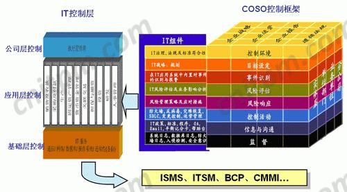 从微观上来说,为保护IT与业务目标一致,有限利用IT资源,提高绩效,降低风险与控制成本,需按照国际普遍接受的企业内部控制标准COBIT,在IT的计划与组织、获得与实施、交付与支持、监控四个领域建立IT控制过程,有效地控制IT建设的整个生命周期的风险。