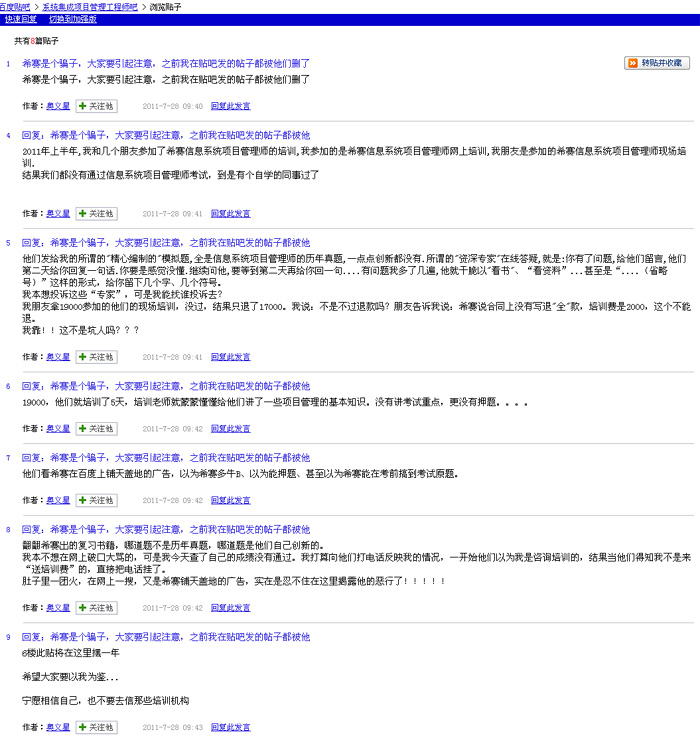 致软考者的一封信—控诉万恶的软考培训机构:http://bbs..com/thread-583097-1-1.html