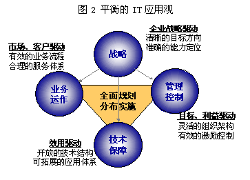 企业IT应用关系到企业各个层面的能力提升,需要进行总体规划,从战略、业务、管理、技术等多角度全面应对,全员参与(如图2)。其实, IT应该而且可以像其他业务功能一样得到很好的管理。