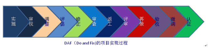 我国从建国到70年代末期以来,一直受到西方国家的制裁,未能与国外的专家进行交流和学习。这段期间,我国的专家在建立目标后只能够从摸索的过程中达到科研的成果(例如原子弹试爆),这些项目的实施过程包括无数次的尝试制作,修改,再制作,拆舍,重组,再修改等不同方法,一直到项目的结果可以不再需要修改,能够达到目标,被接受后才停止下来。然后再朝另一个目标采用同样的摸索过程进行另一个项目的交付,这个摸索式的实施过程我姑且把它称作“Do and Fix”(或简称 “DAF”)体系。