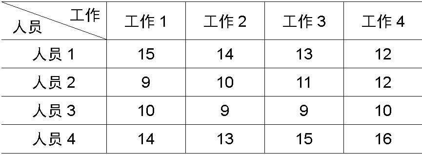 四人完成四项工作,他们完成各项任务的时间(小时)如下表所示,如何安排四人的工作,才能使完成这四项工作总的时间消耗最少为()。 A、45 B、43 C、42 D、44