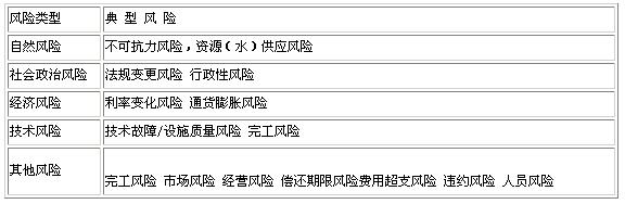 Ⅱ级风险: 技术故障/设施质量风险B7 通货膨胀风险B6 法规变更风险B3 资源(水)供应风险B2 市场风险B9 完工风险B8 经营风险B10 偿还期限风险B11