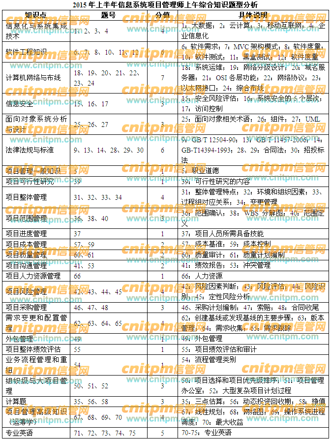 点击查看>>2015年上半年信息系统项目管理师题型分析