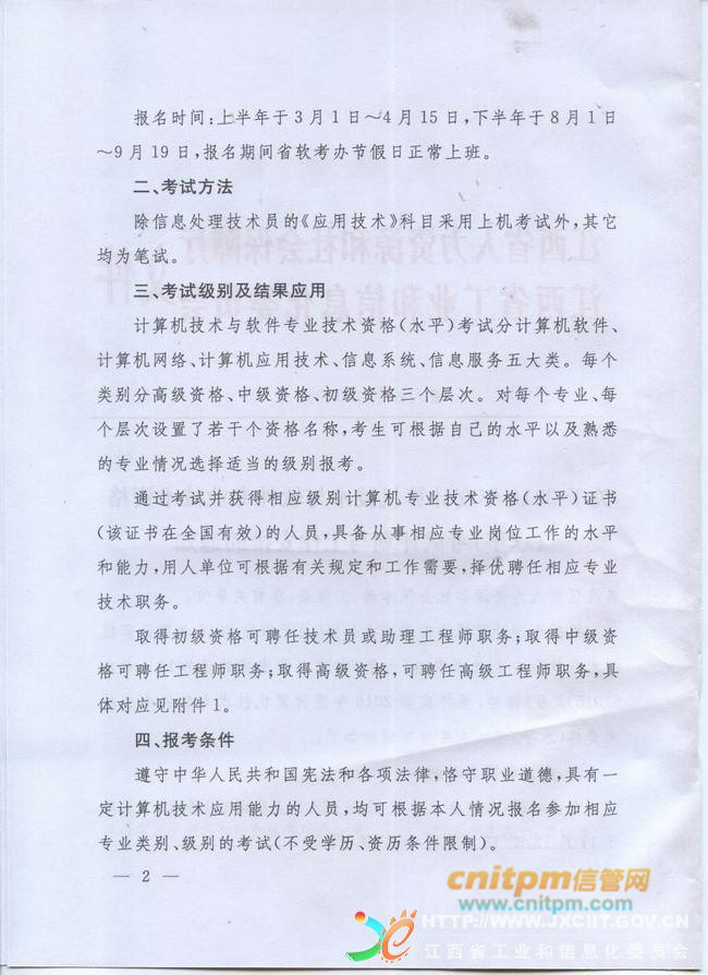 报名方式:现场报名,具体报名点可查看>>江西2016年计算机软件考试报名地点