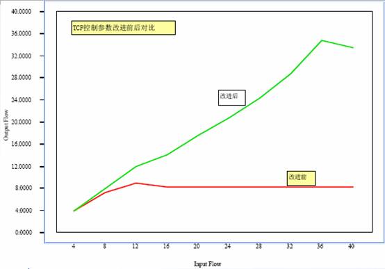 除去定义与测量阶段,此项目的分析思路是这样的:首先是头脑风暴鱼骨图,罗列所有大家能想到的可能原因;然后将这些原因按照告警的逻辑处理流程组织成FMEA,进行RPN分析,筛选出RPN值大于100的少数因素,作为潜在的关键因子;之后对这些潜在因子逐一试验,进行确认。整个项目的突破就出现在第一个因子的试验中,其试验数据如图1所示,横坐标表示输入的告警流量,纵坐标表示告警处理延时。图中的曲线显示有周期性的拐点,而在拐点之后,告警流量增加,服务器的处理延时反而有较大的降低。这个现象如果没有针对此原因的试验,没有这些数据是无法看到的。分析这个现象的原因,难不到我们的软件工程师,很快就得出了结论:TCP协议参数设置不当。修改此参数后,重新做同样的试验,得到数据如图2所示,可见其告警吞吐率基本上与输入流量呈线性关系增长,瓶颈已经消除。这不仅仅是确认了此因子是关键因子,同时也验证了改进措施的有效性。另外几个因子也是类似的,通过针对每一种可疑因子的试验,或确认此因子为关键因子,或筛选影响不大的因子;然后针对每个关键因子寻找技术上的解决办法,就更不在话下了。此项目的成功为公司创造了每年166万的收益。