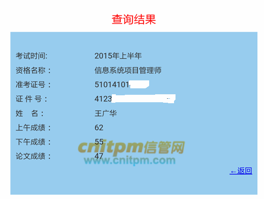 做系统集成工作有几年了,一直梦想考个高级项目经理证书,先后买了很多本书,但总觉得考试很难,拖了很多年没有付诸行动。2014年12月我考过pmp后,考高级项目经理证书的念头又开始了,并在春节正式开始学习备考。我每天白天工作、晚上辅导孩子作业,夜里十点至十二点才是我的学习时间。经过3个月的苦练,我最终取得了62/55/47的好成绩,一次性通过了高项考试。现在回过头看,高项考试并不难,特别是上午考试,上午考试关键是选好教材、多做练习、针对性加强。下午考试的关键是通过模仿掌握套路。