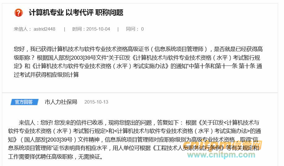 一句话就是 信息系统项目管理师是否等于高级工程师? 属于副高没错,但是否完全一致就不懂了。