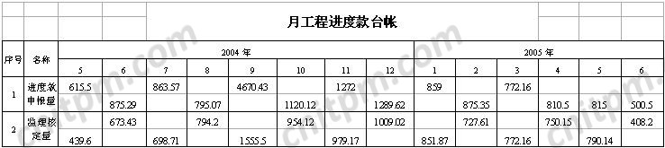 从表中数值(CV)看出,从2004年5月~2004年12月,成本偏差均为负值,负成本说明,这一阶段建设单位投入资金不足,施工单位垫资施工,投入较大影响资源配置,工效较低,这也是进度滞后的一个重要影响因素;2005年2月~2005年6月,成本偏差为正值,说明成本投入超支,一方面满足当月工程需要,另一方面补偿施工单位的前期垫资。