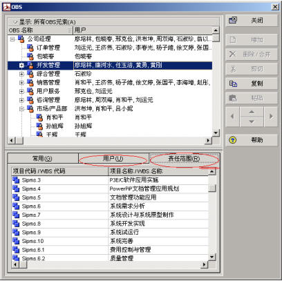 P3E中,一个OBS节点可以对应多个系统用户,所以OBS可以基于管理角色或岗位来设置,也可以按具体管理人员设置,为了达到责任清晰、分工明确的目的,需要结合EPS和WBS的设置综合考虑。下图是某公司的OBS分解结构。