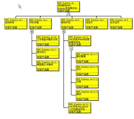 项目经理在Project下对项目的工作范围进行确定,也就是创建项目的WBS。WBS划分的原则可以归结为:1)可以管理的、能够分配专门的职权和职责;2)同其他进行的工作有最小的搭接或依赖关系,以减少后面计划编制的复杂度;3)能够根据进展进行度量。WBS划分主要依据是项目的交付物(project deliverables)。
