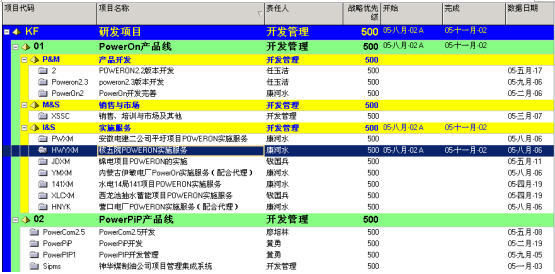 在下图中,产品PowerOn2.3版本开发是项目,XX公司实施服务项目也是一个项目,为每个项目指定项目经理,确定项目的期望完工时间。