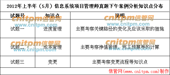 2012年上半年信息系统项目管理师下午案例分析3道题的知识分布情况如表2所示。