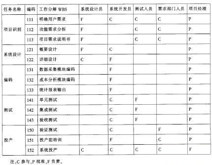 表2 成本软件管理项目工作责任分配矩阵表