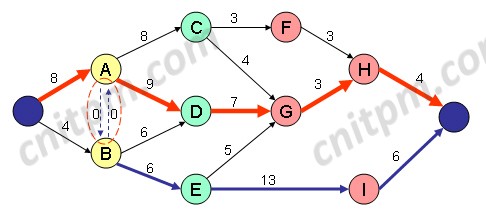 1.依赖是从A->B , 这个时候关键路径不再是Start->ADGH->End.而是S->ABEI->End,关键路径长为33