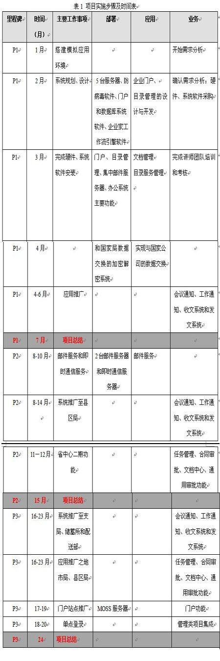 凡事预则立,不论大事小事,不论是小项目还是大项目,都必须要计划,通过划中使我们能做总揽全局,胸中有数,而在项目计划中,里程碑计划又是种极其具有杀伤力的,请看下表关于OA项目实施常见的里程碑计划。