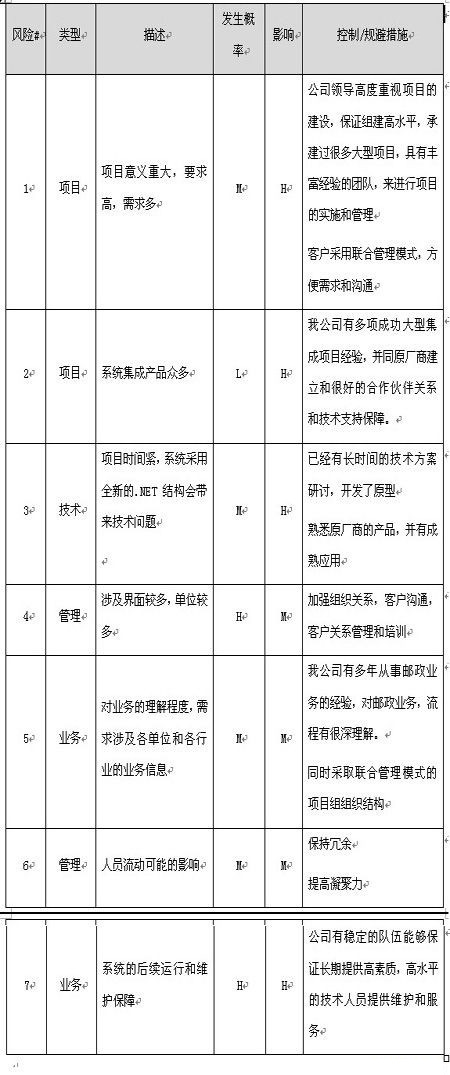 说明:发生概率及影响程度中,H-高 M-一般 L-低