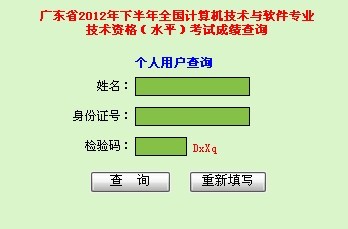 广东省2012年下半年系统集成项目管理工程师等初中级别考试成绩已可查询,学员可点击下图进行查询页面