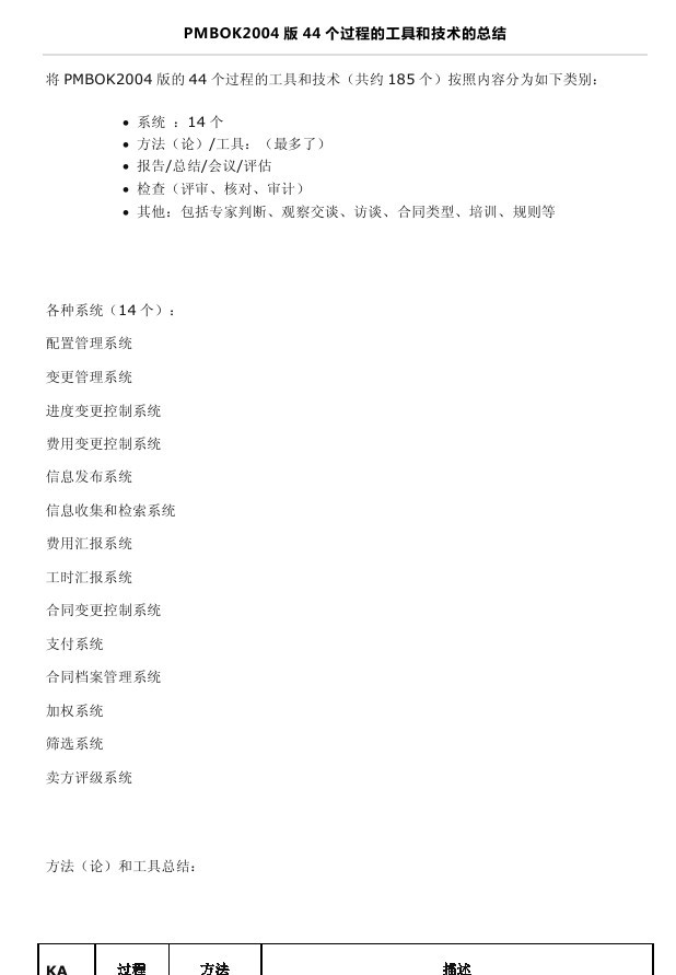 PMBOK2004版44个过程的工具和技术的总结下载地址:https://m.fzyzx.cn/down/ShowForum-133404-1.htm