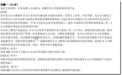 那个时候的题目比现在的简单,因为在题目的标题处就已经告诉你他这个题目考的是啥了(……,从项目整体管理和配置管理的角度,……),而现在就没这么容易了,你需要去自己判断某个题目它涉及到哪些知识点,如2009年的一个试题: