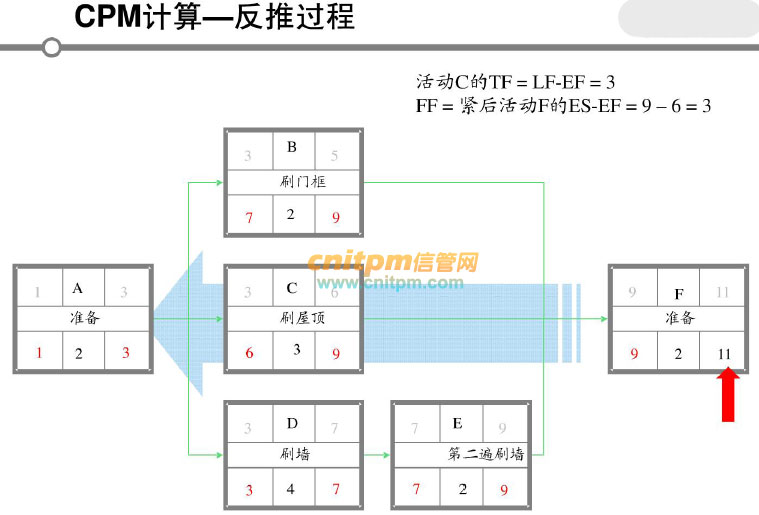 3)最迟结束时间(LF):为了使项目按时完成,某项工作必须完成的最迟时间