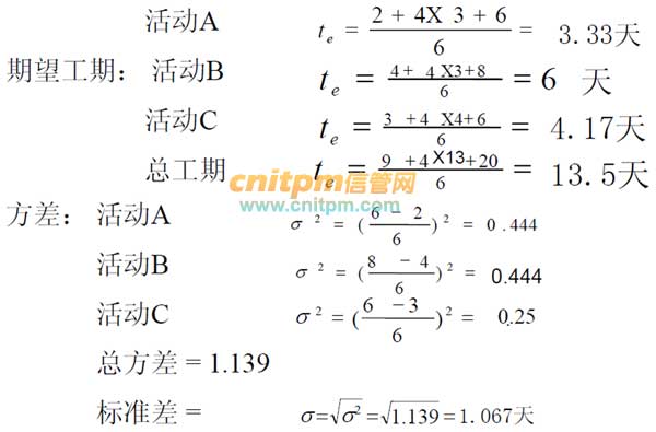 这里要注意各项活动的标准差不能相加,只有方差才能相加。