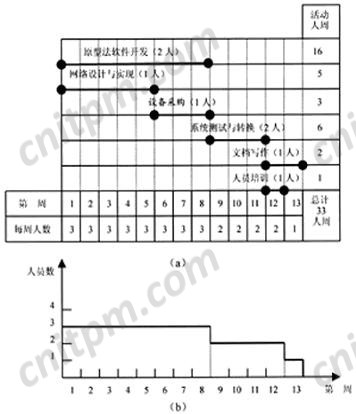 信息系统项目的人力分配大致符合Rayleigh-Norden曲线分布,呈现出前后用人少、中间用人多的状况。然而,信息系统开发人员并不是想找就能找到的。因此,在制定人力资源计划时,就要在基本按照上述曲线配备人力的同时,尽量使某个阶段的人力稳定,并确保整个项目期人员的波动不要太大。我们称这一过程为“人力资源计划的平衡” 。