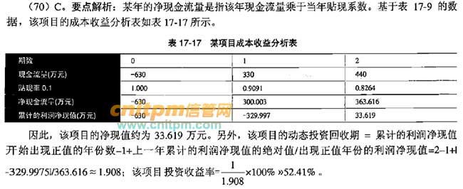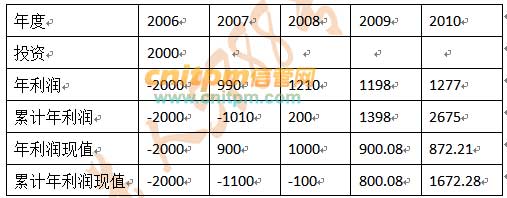 解析:在题干中表的基础上,添加“累计年利润”和“累计年利润现值”,可得到下表: