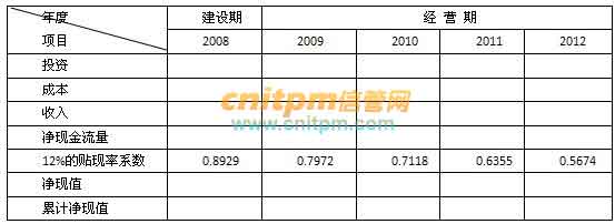 总会计师按12%的贴现率,制作出公司从2008年到2012年的现金流量表。