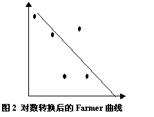 由于后果与概率的范围很大,往往跨越好几个数量级,而且实际中两者之间往往存在反比关系,即后果越严重的发生概率越小,发生概率越大的后果通常也越轻。因此事件序列点在Farmer图中往往如图1所示集中于坐标轴的两头,不便于区分。为解决这一问题,我们可以把Farmer图的两个坐标进行对数转换,即用其指数值取代原值。这样等风险线就变成了一条折线,见图2,事件序列点的分布也从原来的集中变得分散,风险评价更加直观、明晰。