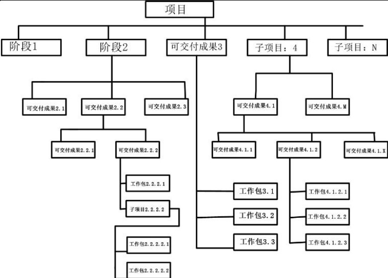 D、图中的工作包是WBS中较大的单元,可向下继续分解
