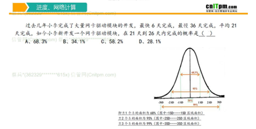 三点估算是21天对吧,那一个正负标准差应该是16-26,是68.3%,题目告诉你是21-26,那就是一个正的,就是一半啊