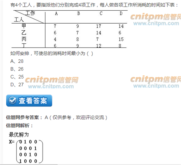 @JRS直播考友 答案是按照匈牙利法做的,这个方法属于运筹学,有点复杂,也超纲了