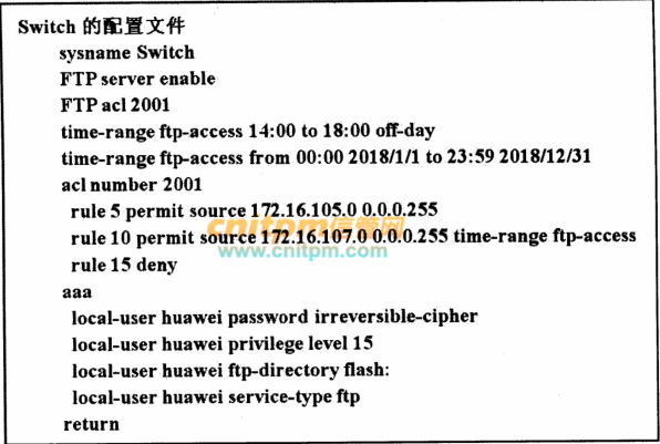 58、 如下图所示,使用基本ACL限制FTP访间权限,从给出的Switch的配置文件判断可以实现的策略是( )。