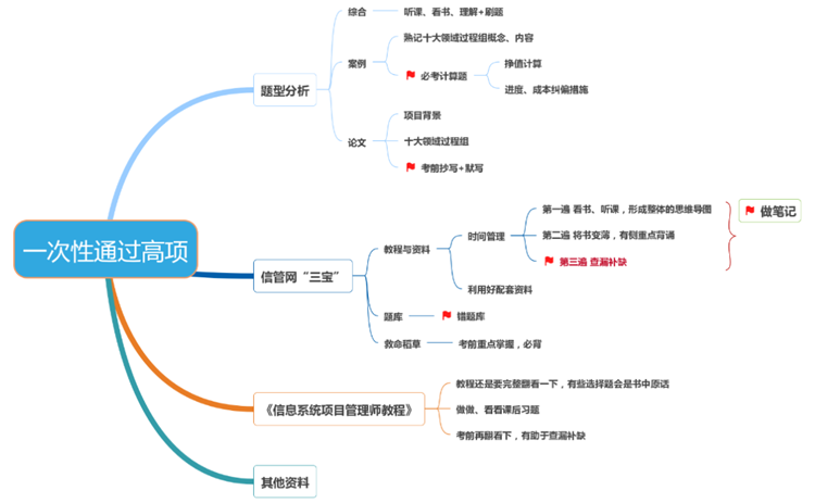 下图为我一次性通过高项的经验总结,红色小旗子标注的地方就是我的成功法宝。