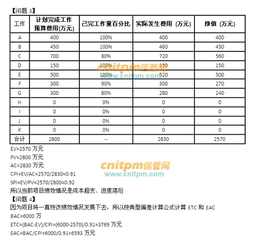 因为项目将一直按该绩效情况发展下去,所以按典型偏差计算公式计算ETC和EAC