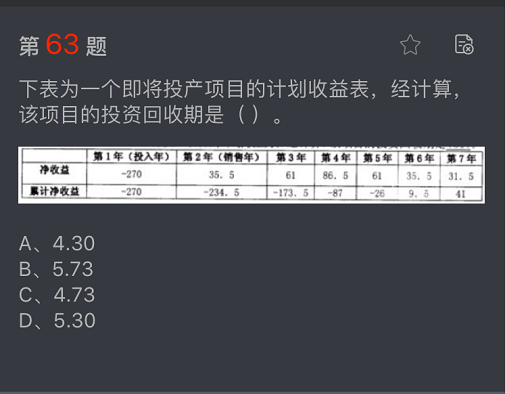 P t =累计净现金流量开始出现正值的年份数-1+上一年累计净现金流量的绝对值/出现正值年份的净现金流量