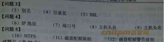 在iis 6.0中,每个web站点都具有唯一的、由三部分组成的标识符,用来接收和响应请求,分别是(6)、(7)和(8)。网络工程师通过单击网站属性→网站→高级选项,通过添加(9)的方式在一个ip地址上建立多个网站。