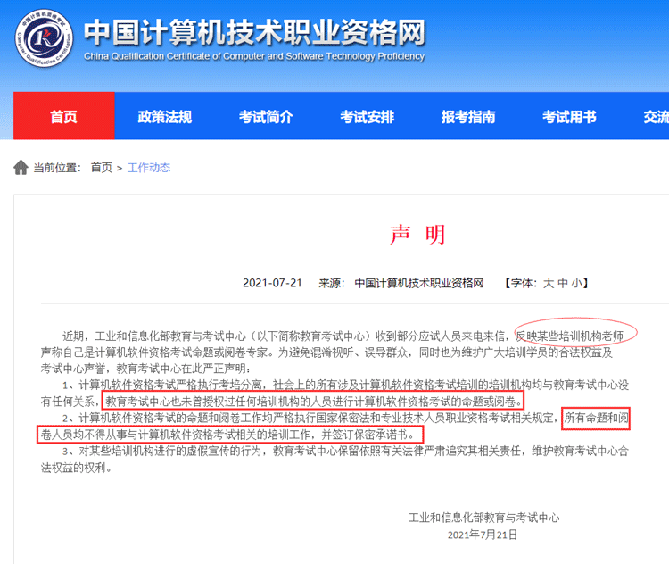 近期,工业和信息化部教育与考试中心(以下简称教育考试中心)收到部分应试人员来电来信,反映某些培训机构老师