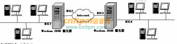 某企业采用windows2000操作系统部署企业虚拟专用网(vpn),将企业的两个异地网络通过公共internet安全的互联起来。微软windows2000操作系统当中对ipsec具备完善的支持,下图给出了基于windows2000系统部署ipsec vpn的网络结构图。