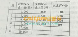 某信息系统集成项目计划6周完成,项目经理就前4周的项目进展情况进行分析情况如下,项目的成本执行指数CPI为()。