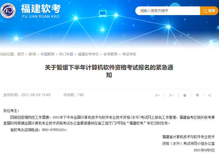 关于暂缓下半年计算机软件资格考试报名的紧急通知
