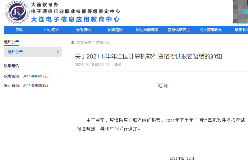 关于2021下半年全国计算机软件资格考试报名暂缓的通知