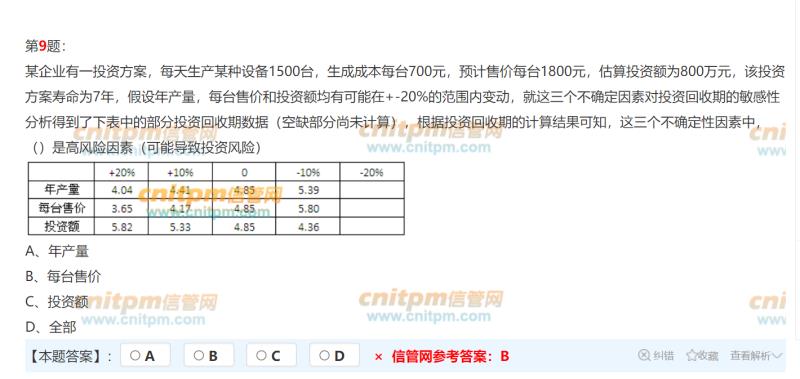 计算时看基准和20%的浮动差值,越大,灵敏度就越大,风险就越高。年产量最大差值=4.85-4.04=0.81