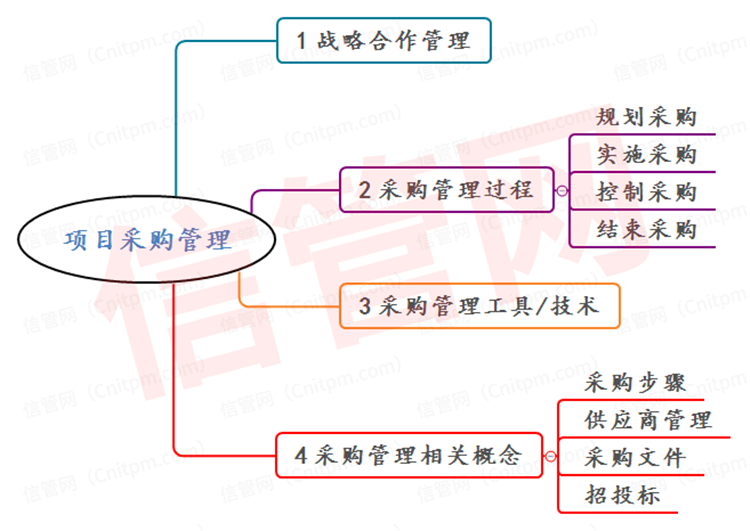 项目采购管理是由战略合作管理、采购管理过程、采购管理工具/技术、采购管理相关概念等四部分组成。