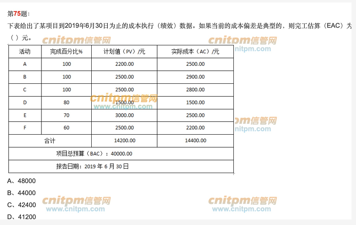 pv 14200, bac. 4000, ev 24000 EAc : BAC/CPI,结果算不出来了。