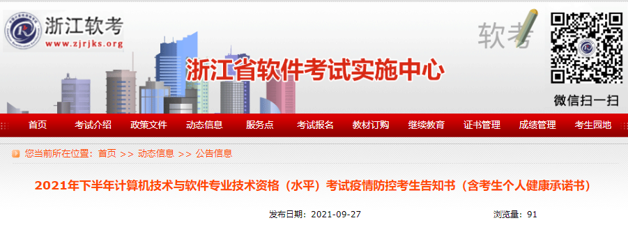 根据浙江省软件考试实施中心发布的《2021年下半年计算机技术与软件专业技术资格(水平)考试疫情防控考生告知书(含考生个人健康承诺书)》,浙江2021年下半年软考考试考生提前做好防疫准备:
