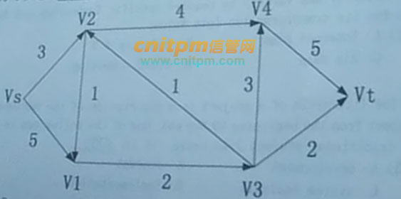 下图标出了某产品从产地Vs到销地Vt的运输网,剪线上的数字表示这条输线的最大通过能力(流量)(单位:万吨/小时)。产品经过该运输网从Vs到Vt的最大运输能力可以达到()万吨/小时。