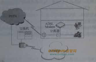 5、下面是家庭用户安装adsl宽带网络时的拓朴结构图,图中左下角的x是( 1 )设备,为了建立虚拟拨号线路,在用户终端上安装( 2 )协议。