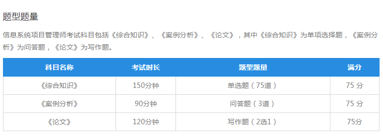 信息系统项目管理师考试科目共有三科:《综合知识》、《案例分析》、《论文》